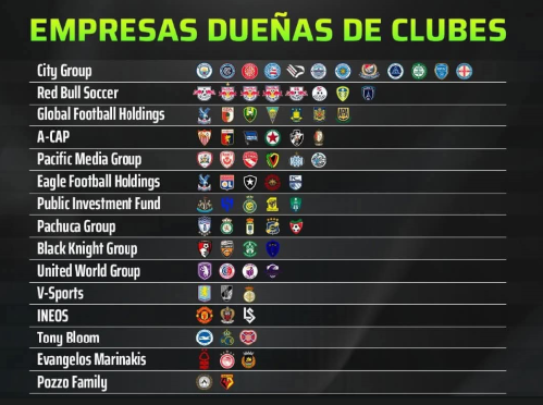 Sports A nivel mundial, hay 26 empresas que son dueñas de equipos de fútbol; el Grupo Pachuca es una de ellas con 5 clubes, en tanto que el City Group dispone de 12. 1 agosto, 20251 agosto, 2025 maguadam1526 Fuentes: BOLAVIP / FIFA Share this:Haz clic para compartir en Twitter (Se abre en una ventana nueva)Haz clic para compartir en Facebook (Se abre en una ventana nueva) Relacionado