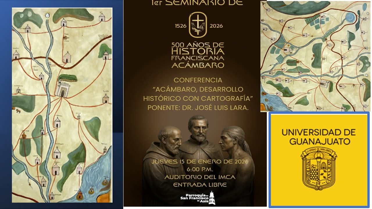 Con la conferencia: “Acámbaro, desarrollo histórico con cartografía”, inicia este jueves 15 de enero la actividad de la Orden Franciscana Menor para conmemorar a los “500 años” de la fundación de Acámbaro: 1526-2026.