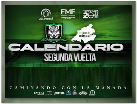 Acámbaro El Lobos del Acámbaro realiza la segunda vuelta del Torneo 2025-2026 de la Liga Premier, Serie B; concluye su participación el 8 de marzo contra el Gorilas 18 febrero, 202618 febrero, 2026 maguadam1526 Fuentes: FMF / LIGA MX / Directiva del Lobos Share this:Haz clic para compartir en Twitter (Se abre en una ventana nueva)Haz clic para compartir en Facebook (Se abre en una ventana nueva) Relacionado