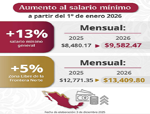 Acámbaro El nuevo salario mínimo para México, ya está vigente desde el 1o. de enero de 2026 25 abril, 202625 abril, 2026 maguadam1526 Fuente: Gobierno de México Share this:Haz clic para compartir en Twitter (Se abre en una ventana nueva)Haz clic para compartir en Facebook (Se abre en una ventana nueva) Relacionado