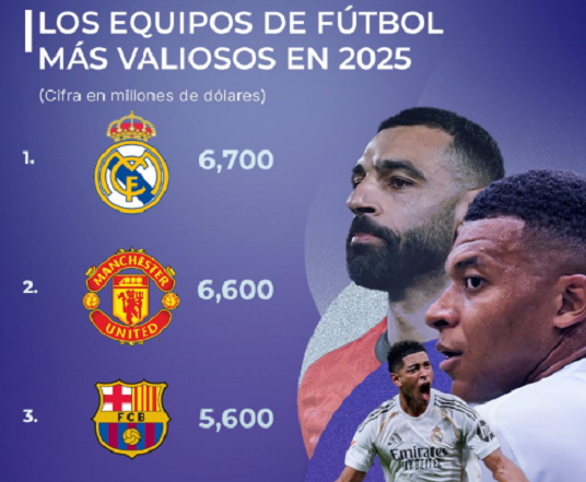Acámbaro El Real Madrid es el equipo más valioso del 2025, con una cifra de 6,700 millones de dólares 22 enero, 202622 enero, 2026 maguadam1526 Fuentes: FORBES / EL CEO Share this:Haz clic para compartir en Twitter (Se abre en una ventana nueva)Haz clic para compartir en Facebook (Se abre en una ventana nueva) Relacionado
