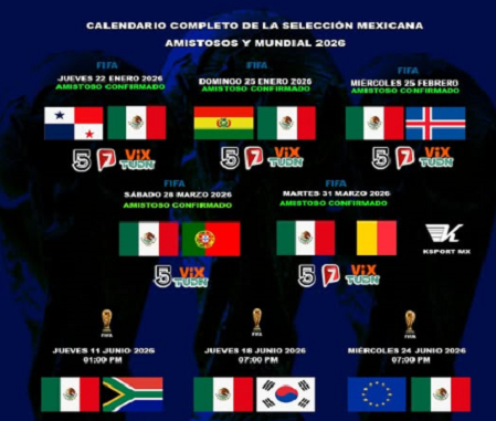 Acámbaro El TRI de la Selección Mexicana tendrá cinco partidos de preparación, antes de debutar en el Mundial 2026 3 enero, 20263 enero, 2026 maguadam1526 Fuentes: FMF / FIFA Share this:Haz clic para compartir en Twitter (Se abre en una ventana nueva)Haz clic para compartir en Facebook (Se abre en una ventana nueva) Relacionado