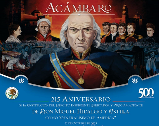 En Acámbaro, Gto., las actividades cívicas y culturales de octubre continúan esta semana, especialmente con la conmemoración del 415 aniversario del nombramiento de Miguel Hidalgo como “Generalísimo de América”