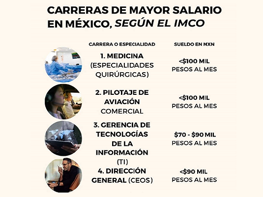 Acámbaro Entre las carreras de un mayor salario en México figura la de Medicina, seguida de la del Pilotaje de un Avión Comercial y en tercer lugar, la de una Gerencia en Tecnologías de la Información. 22 octubre, 202522 octubre, 2025 maguadam1526 Fuente: El Informador.MX Share this:Haz clic para compartir en Twitter (Se abre en una ventana nueva)Haz clic para compartir en Facebook (Se abre en una ventana nueva) Relacionado