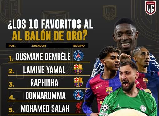 Acámbaro Entre los 10 jugadores favoritos para recibir el Balón de Oro, en la edición del 2025, figura el jovencito Lamine Yamal. Continúan las votaciones entre la prensa deportiva. 4 julio, 20254 julio, 2025 maguadam1526 Fuentes: FIFA / UEFA / GOAL Share this:Haz clic para compartir en Twitter (Se abre en una ventana nueva)Haz clic para compartir en Facebook (Se abre en una ventana nueva) Relacionado