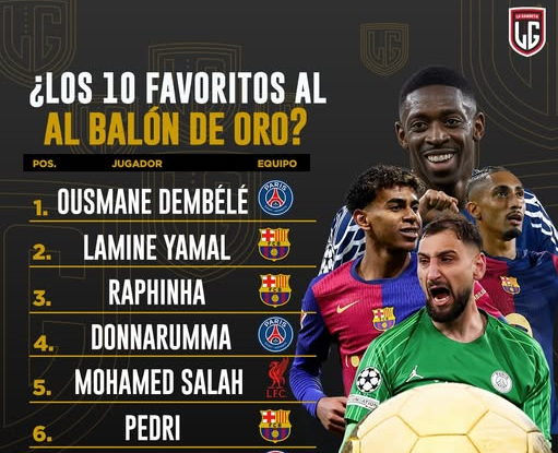 Acámbaro Entre los 10 jugadores favoritos para recibir el Balón de Oro, en la edición del 2025, figura el jovencito Lamine Yamal. Ya se realizan las votaciones entre la prensa deportiva. 5 junio, 20255 junio, 2025 maguadam1526 Fuentes: FIFA / UEFA / GOAL Share this:Haz clic para compartir en Twitter (Se abre en una ventana nueva)Haz clic para compartir en Facebook (Se abre en una ventana nueva) Relacionado