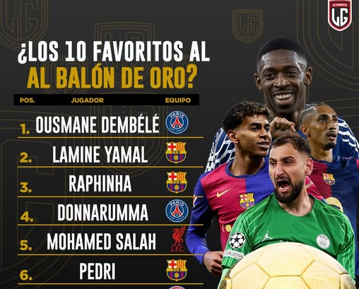 Sports Entre los 10 jugadores favoritos para recibir el Balón de Oro, en la edición del 2025, figura el jovencito Lamine Yamal 16 mayo, 202515 mayo, 2025 maguadam1526 Fuentes: FIFA / UEFA / GOAL Share this:Haz clic para compartir en Twitter (Se abre en una ventana nueva)Haz clic para compartir en Facebook (Se abre en una ventana nueva) Relacionado