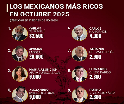 Acámbaro Entre los mexicanos más ricos del país, destaca Carlos Slim, quien ostentaría una fortuna superior a los 82 mil millones de dólares 7 noviembre, 20256 noviembre, 2025 maguadam1526 Fuentes: Forbes / El CEO Share this:Haz clic para compartir en Twitter (Se abre en una ventana nueva)Haz clic para compartir en Facebook (Se abre en una ventana nueva) Relacionado