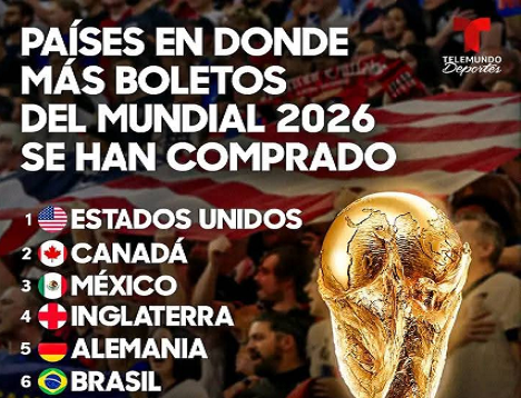 Sports Estados Unidos, Canadá y México son los países que más boletos han vendido para el Mundial del 2026 21 octubre, 202521 octubre, 2025 maguadam1526 Fuentes: FIFA / Comité Organizador / Telemundo Deportes Share this:Haz clic para compartir en Twitter (Se abre en una ventana nueva)Haz clic para compartir en Facebook (Se abre en una ventana nueva) Relacionado