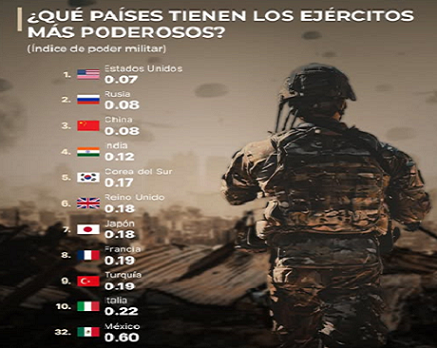Acámbaro Estados Unidos, Rusia y China disponen de los Ejércitos más poderosos del mundo 28 enero, 202628 enero, 2026 maguadam1526 Fuentes: Global Firepower Index / CEO Share this:Haz clic para compartir en Twitter (Se abre en una ventana nueva)Haz clic para compartir en Facebook (Se abre en una ventana nueva) Relacionado