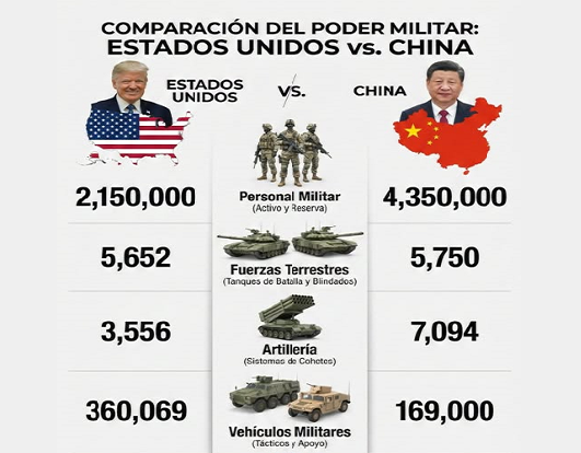 Acámbaro Estados Unidos y China son “muy similares” en la fuerza militar, aunque el primero dispone de más armas nucleares 5 marzo, 20264 marzo, 2026 maguadam1526 Fuentes: Departamentos de Defensa de EEUU y China Share this:Haz clic para compartir en Twitter (Se abre en una ventana nueva)Haz clic para compartir en Facebook (Se abre en una ventana nueva) Relacionado
