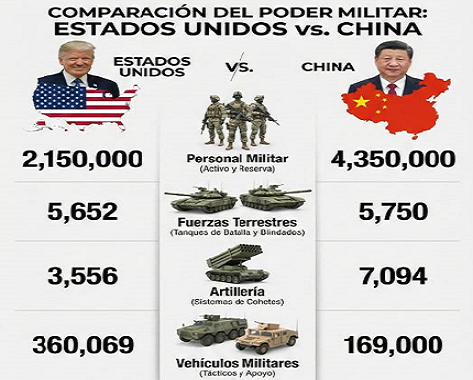 Acámbaro Estados Unidos y China son “muy similares” en la fuerza militar, aunque el primero dispone de más armas nucleares 28 abril, 202628 abril, 2026 maguadam1526 Fuentes: Departamentos de Defensa de EEUU y China Share this:Haz clic para compartir en Twitter (Se abre en una ventana nueva)Haz clic para compartir en Facebook (Se abre en una ventana nueva) Relacionado