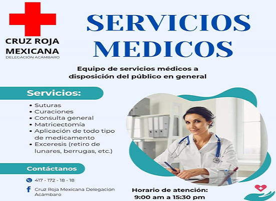 La Cruz Roja Mexicana, Delegación “Acámbaro”, ofrece servicio médico a la población.