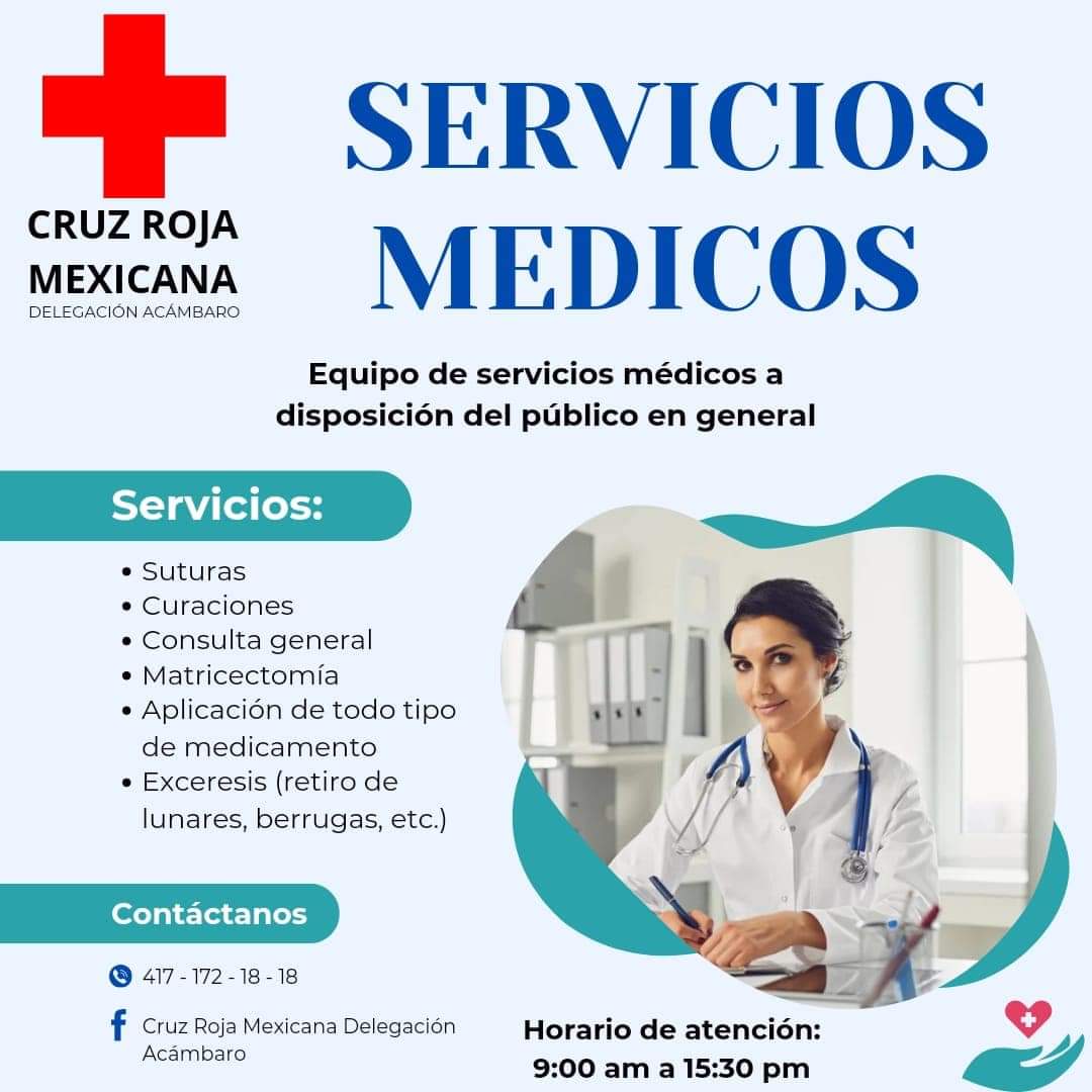 La Cruz Roja Mexicana, Delegación “Acámbaro”, ofrece servicio médico a la población.