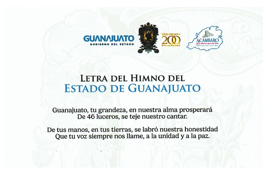 Acámbaro La letra del himno del Estado de Guanajuato refiere a su grandeza y unidad de su gente; como también al orgullo de ser parte de la nación mexicana. 21 abril, 202621 abril, 2026 maguadam1526 Fuente: Gobierno del Estado de Guanajuato. Share this:Haz clic para compartir en Twitter (Se abre en una ventana nueva)Haz clic para compartir en Facebook (Se abre en una ventana nueva) Relacionado