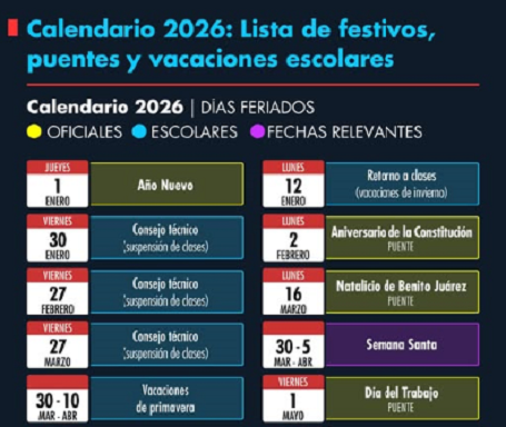 La Secretaría de Educación Pública confirmó el Calendario 2026, que incluye días festivos, puentes y vacaciones