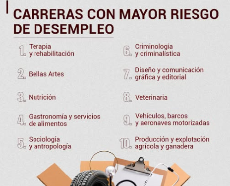Acámbaro La terapia y la rehabilitación sería una de las carreras en México con mayor riesgo de generar desempleo. Otras son las de Nutrición y Sociología. 20 enero, 202620 enero, 2026 maguadam1526 Fuentes: IMCO 2024 / EL CEO Share this:Haz clic para compartir en Twitter (Se abre en una ventana nueva)Haz clic para compartir en Facebook (Se abre en una ventana nueva) Relacionado