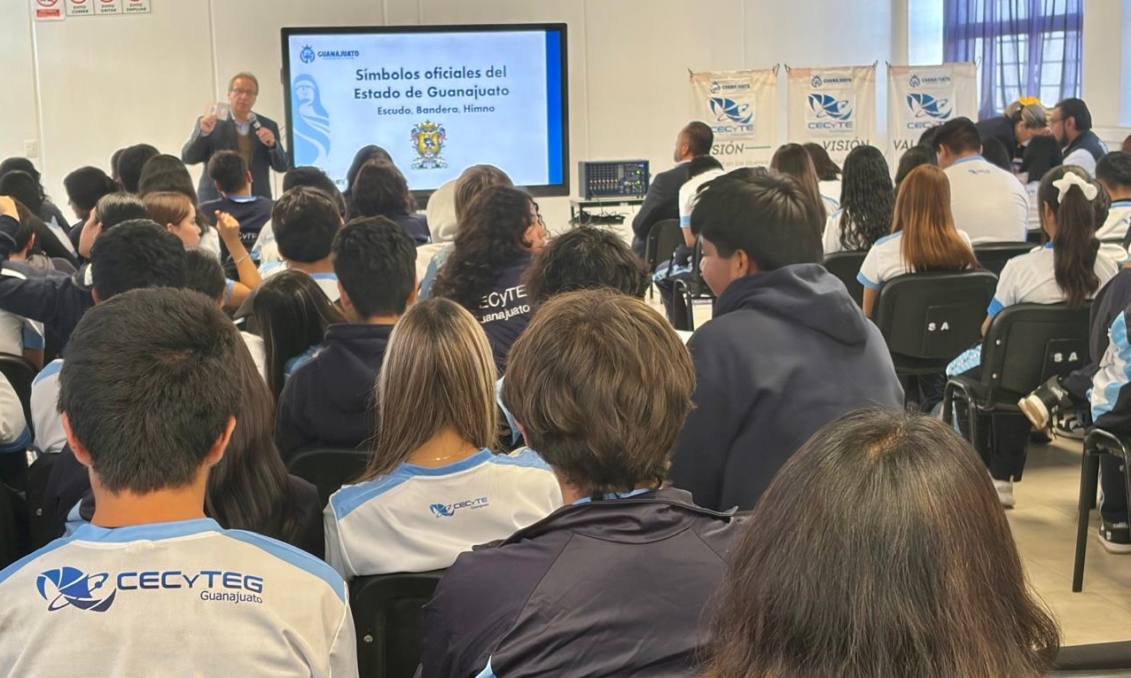 Se dijo que los “Símbolos Estatales” que son tres –el Escudo, la Bandera y el Himno-, forman parte del orgullo, el sentido de pertenencia e identidad de los guanajuatenses y que datan del período 2023-2024, a la vez de que ya existe la Ley del Escudo, la Bandera y el Himno, así como el Reglamento correspondiente.