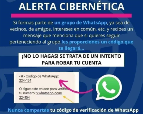 Acámbaro Se alerta para evitar incurrir en un engaño para el robo de cuenta del Whatsapp; los ‘hackers’ no descansan! 23 noviembre, 202521 noviembre, 2025 maguadam1526 Fuente: Redes Sociales Share this:Haz clic para compartir en Twitter (Se abre en una ventana nueva)Haz clic para compartir en Facebook (Se abre en una ventana nueva) Relacionado