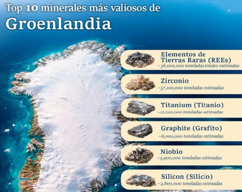 Acámbaro Tierras raras, titanio y litio es parte de la riqueza de minerales que concentra Groenlandia, por ello, la ambición de EEUU para anexársela 4 marzo, 20264 marzo, 2026 maguadam1526 Fuentes: Argusmedia / Redes Sociales Share this:Haz clic para compartir en Twitter (Se abre en una ventana nueva)Haz clic para compartir en Facebook (Se abre en una ventana nueva) Relacionado